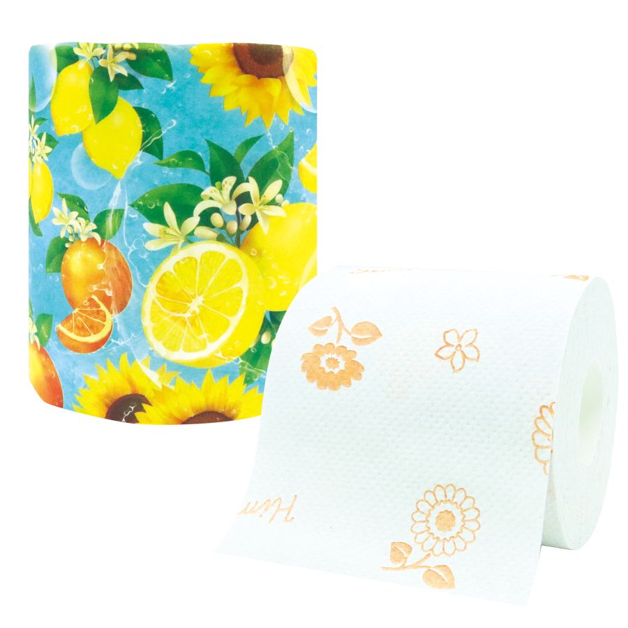 柑橘類とヒマワリ、海の生き物の2種類のトイレットロールの柄です(*^^*)